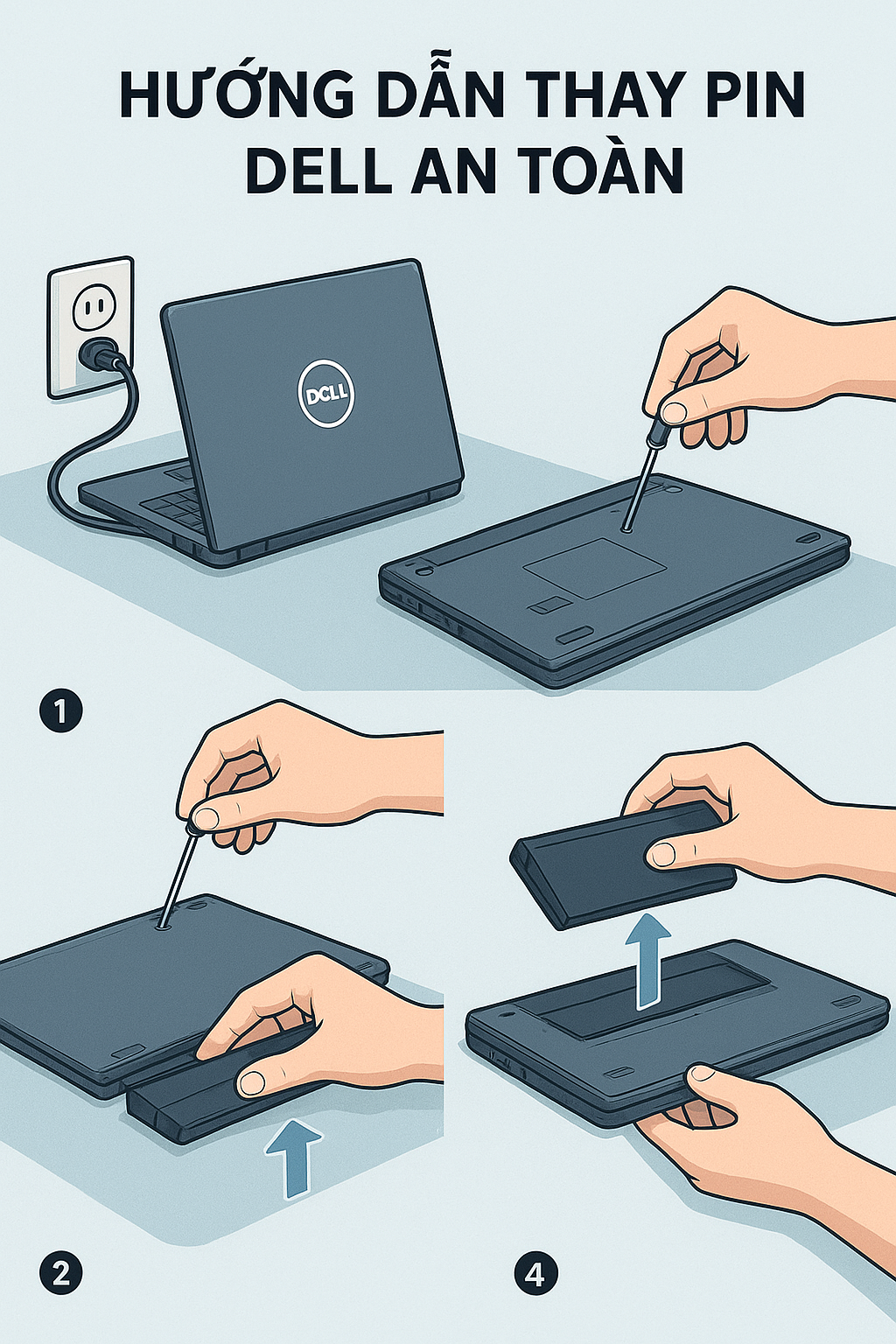 Bạn có thể thay pin Dell theo các bước cơ bản sau: