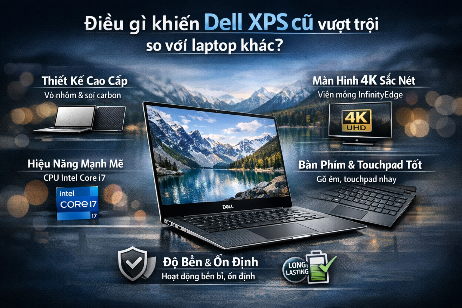 Trong bối cảnh giá laptop mới ngày càng cao, người dùng có xu hướng tìm kiếm các sản phẩm laptop cao cấp đã qua sử dụng nhưng vẫn đảm bảo hiệu năng, thiết kế và độ bền. Dell XPS chính là cái tên đáp ứng trọn vẹn những tiêu chí đó.